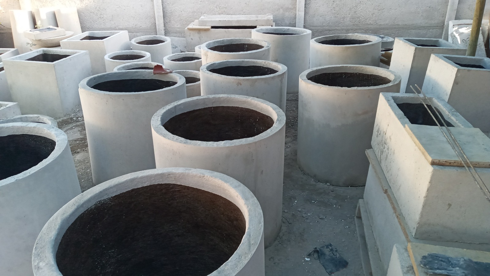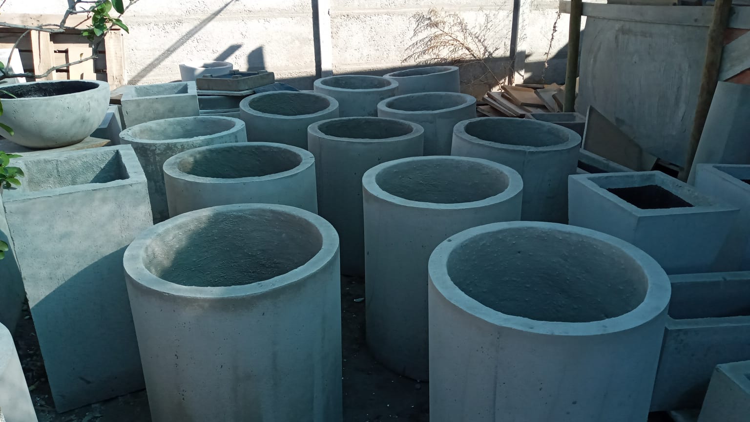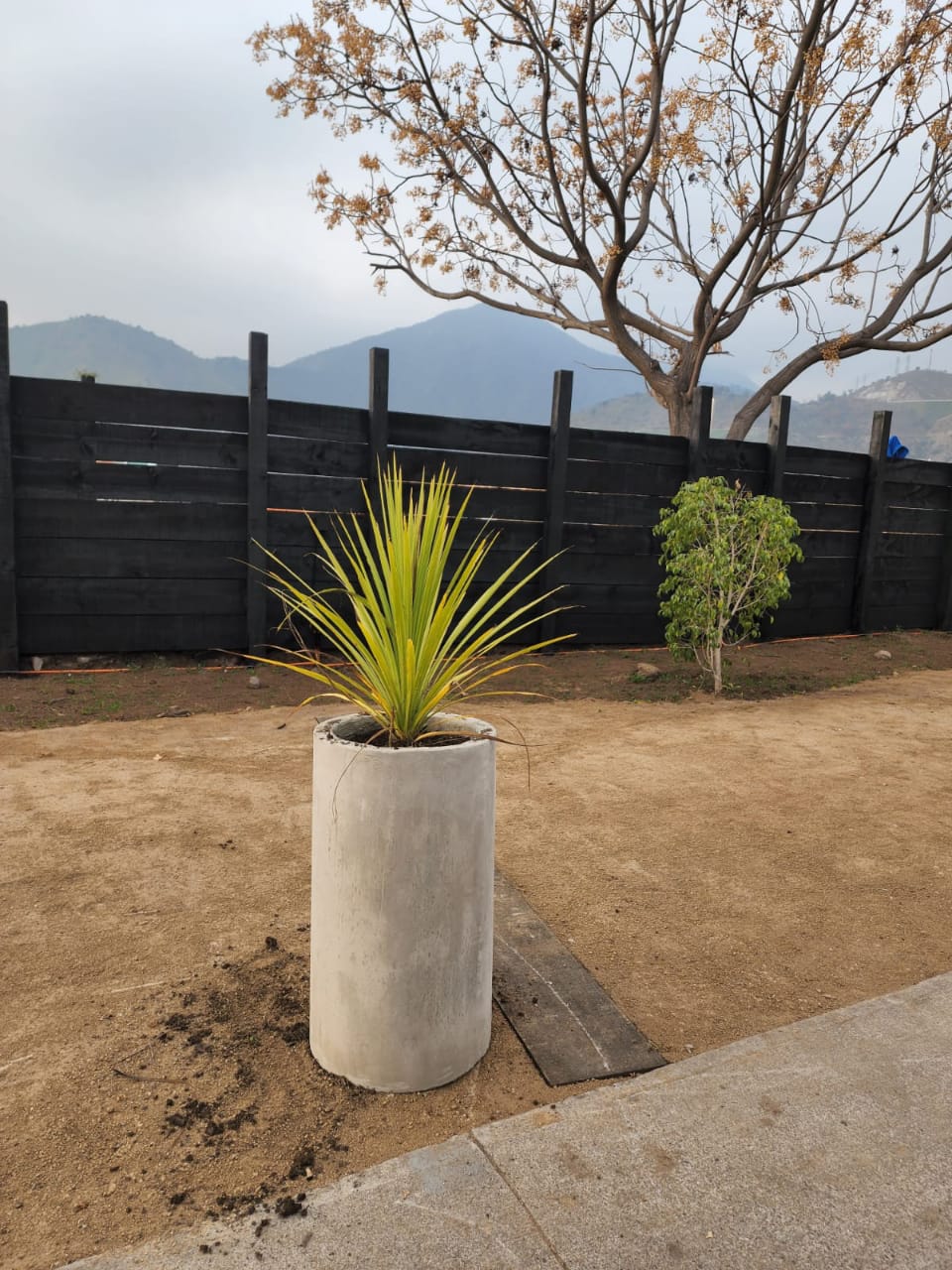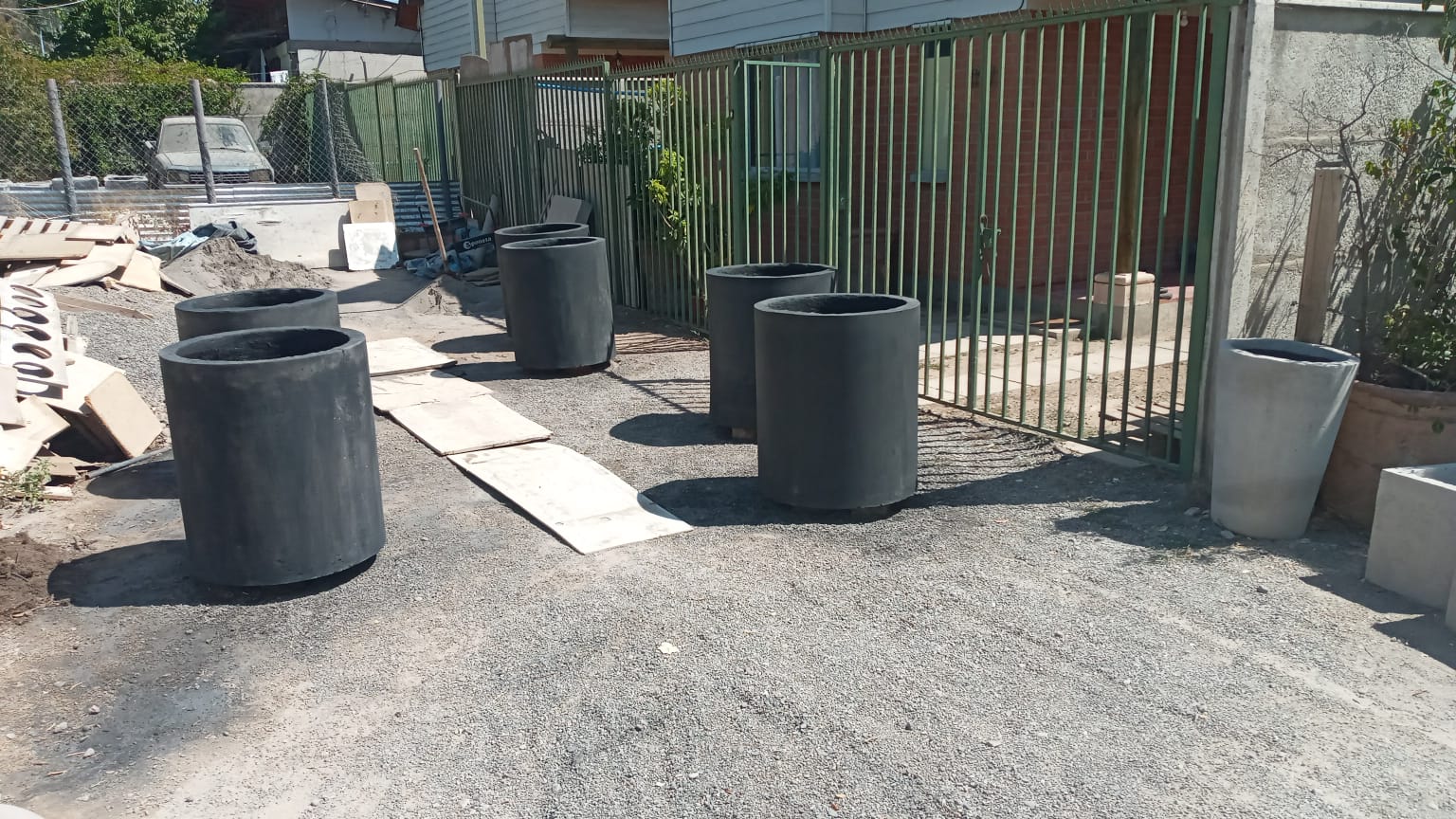 Macetero Cilindro de Cemento. Materiales Macetas: a base de arena gruesa, cemento Polpaico, y pelillo de fibra de vidrio (evita que se tricen).