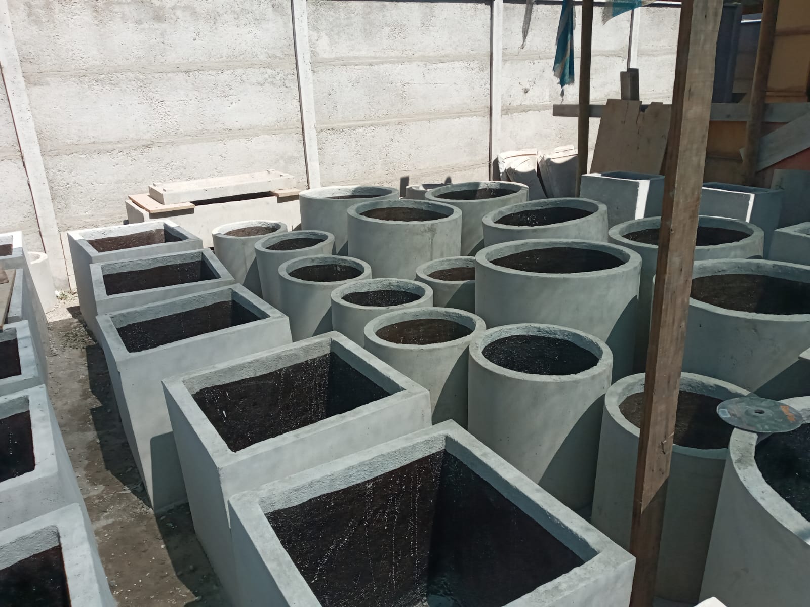 Terminaciones: cemento natural, pintados, cemento a color. Cargo adicional del 10% en el valor si las macetas de cemento van pintadas o si es de cemento a color.